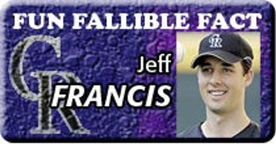 Fox outdoes my Fun Fallible Fact with their investigative work on Jeff Francis trivia. Turns out he likes cheeseburgers. Who'd have guessed?